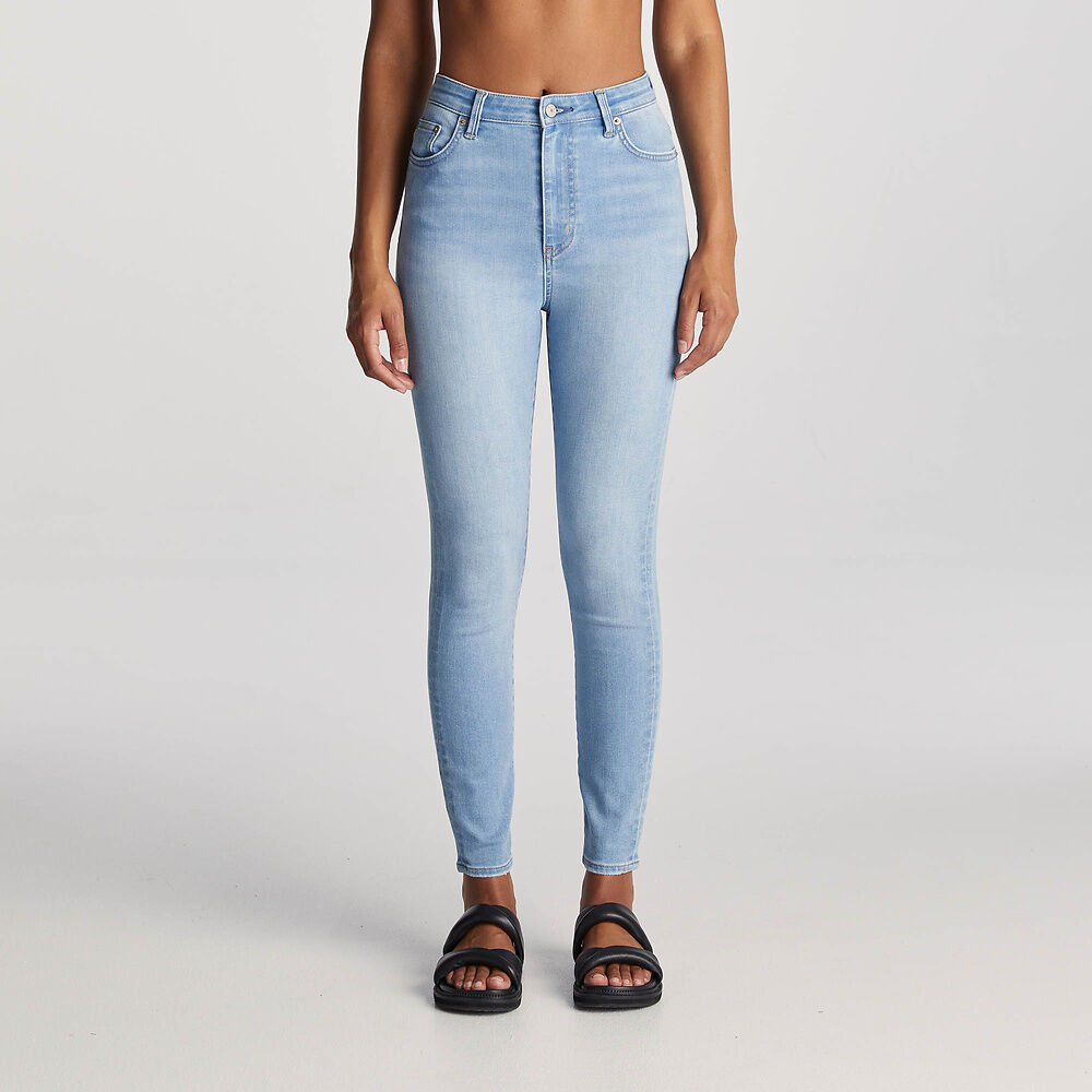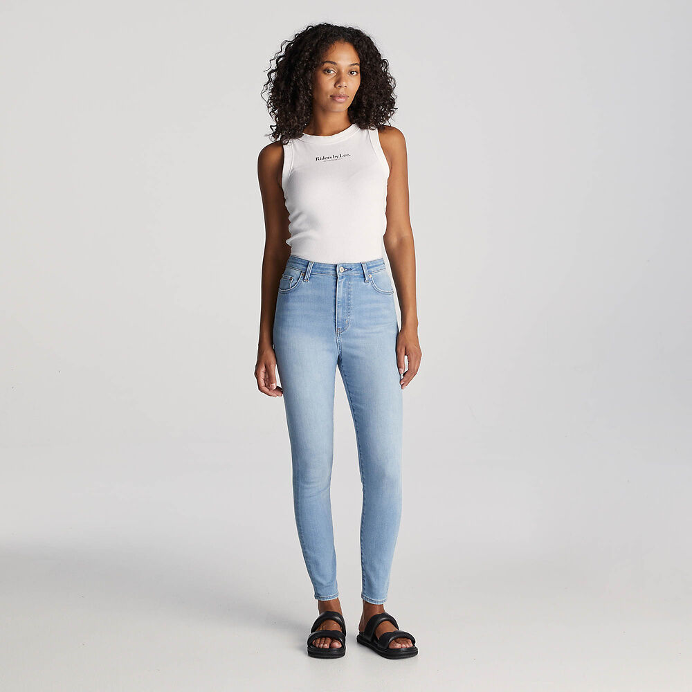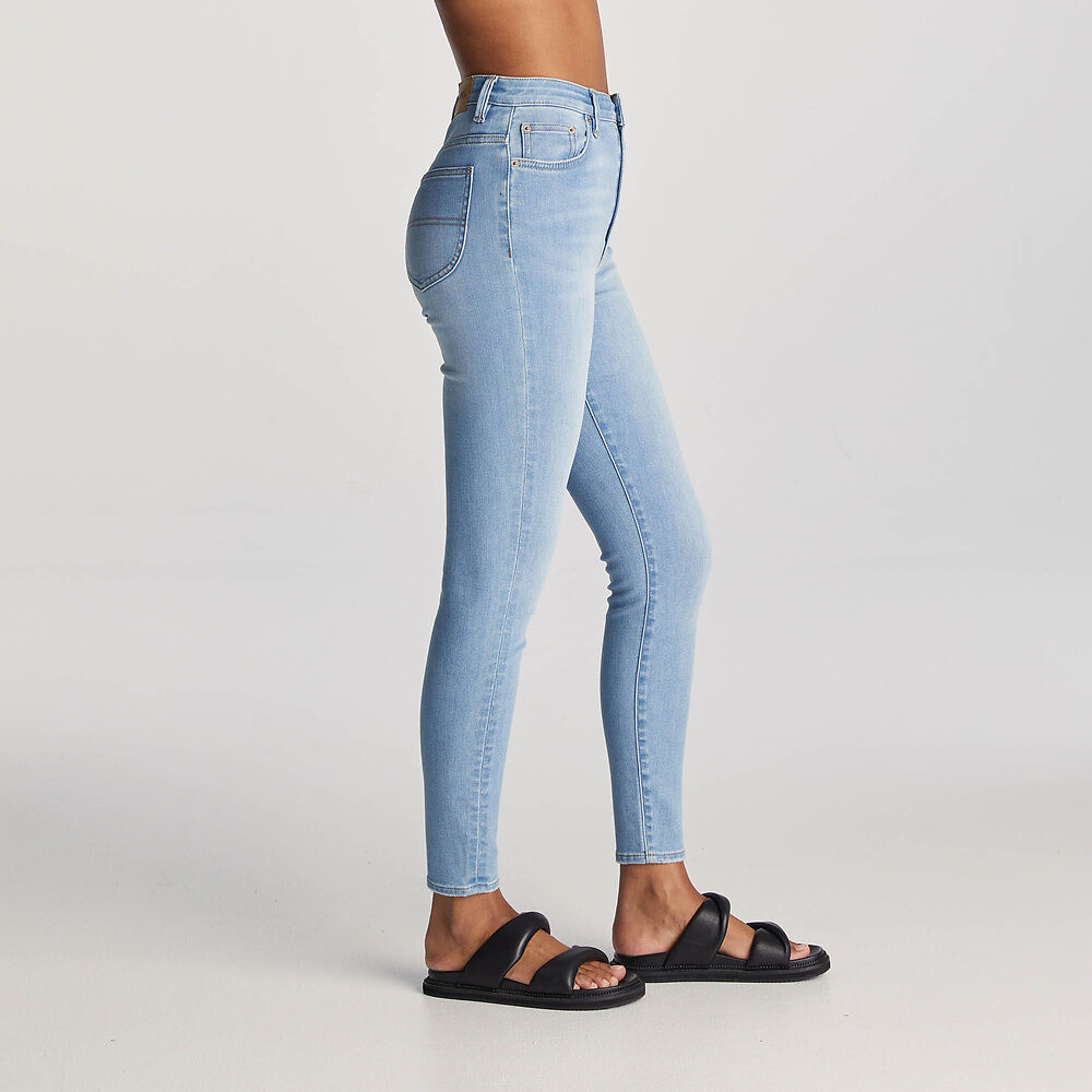 Take your style to new heights with these RIDERS HI RIDER SUNDAY FADE jeans. Our signature high waisted, super skinny fit is crafted with comfort stretch denim for a soft hand feel and flattering silhouette. The vintage pale indigo wash and unique metal trims add a playful touch. Model is 178cm tall, giving these jeans a seal of approval (and a great fit!).