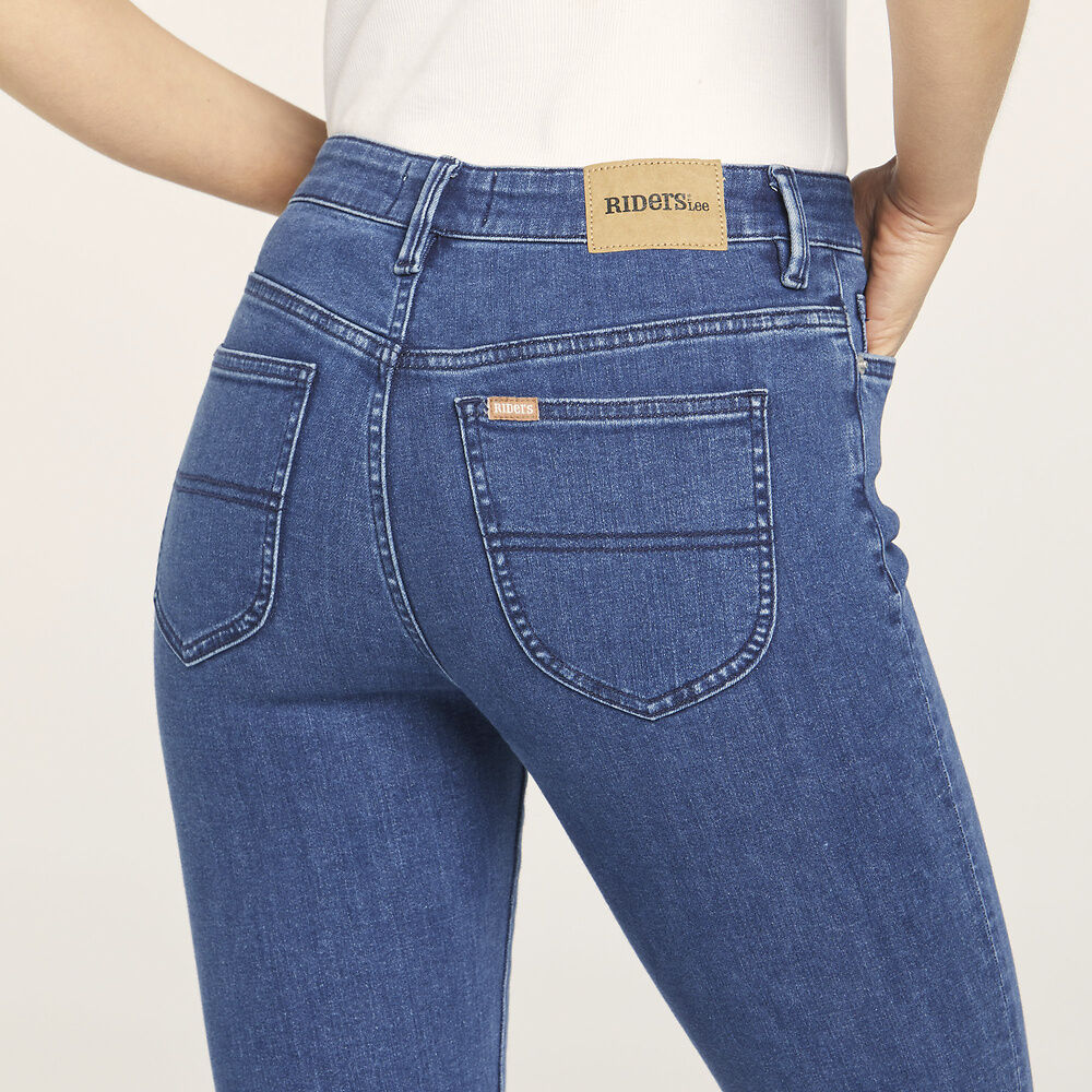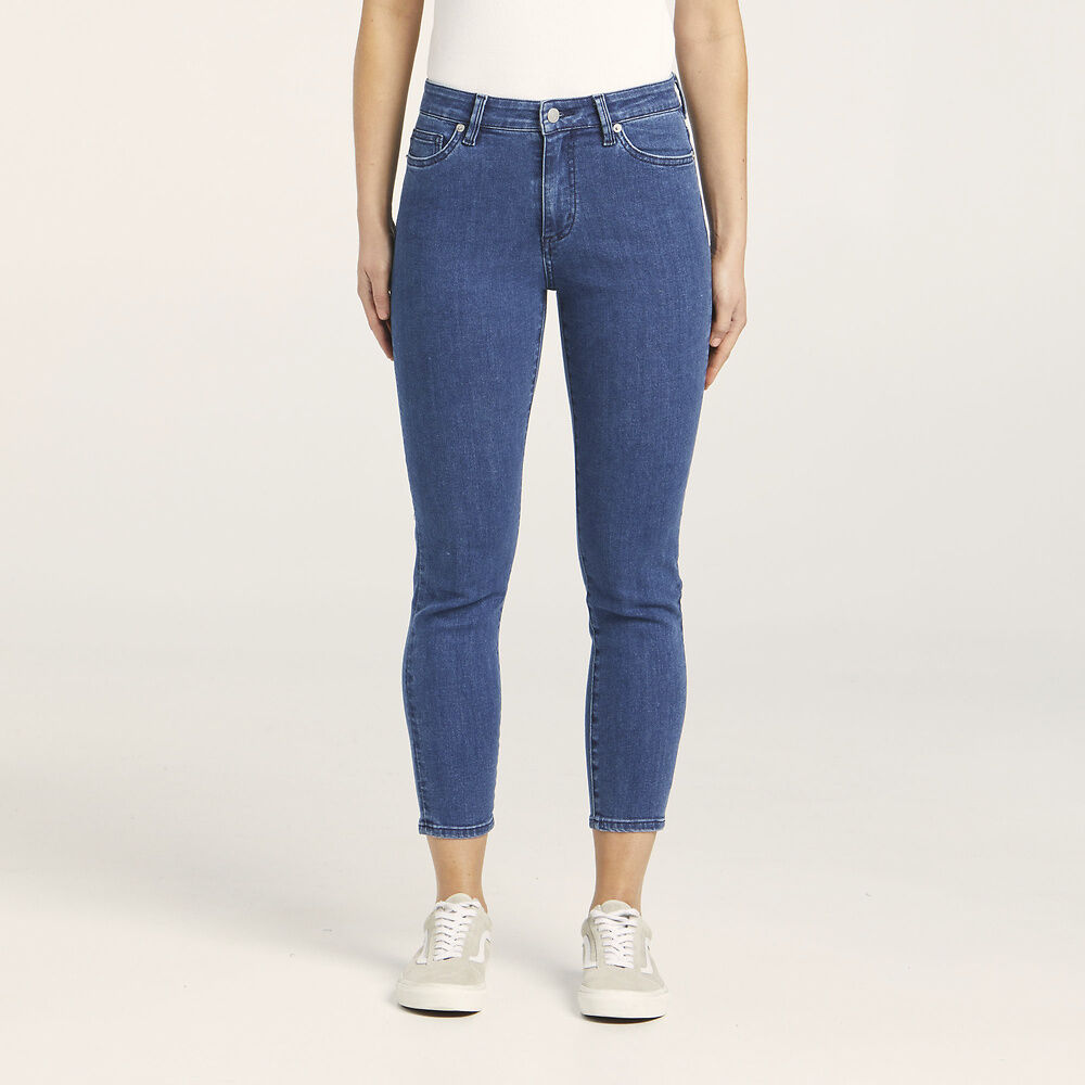 Experience all day comfort with our RIDERS MID CROP BLUE BEACH jeans. These mid rise, super skinny jeans are constructed with a high stretch fabric for the perfect balance of stretch and retention. The cropped ankle length adds a stylish touch while the skinny leg profile hugs you in all the right places. Made with super soft fabric and a vegan paper patch, these jeans are a must-have for any wardrobe.