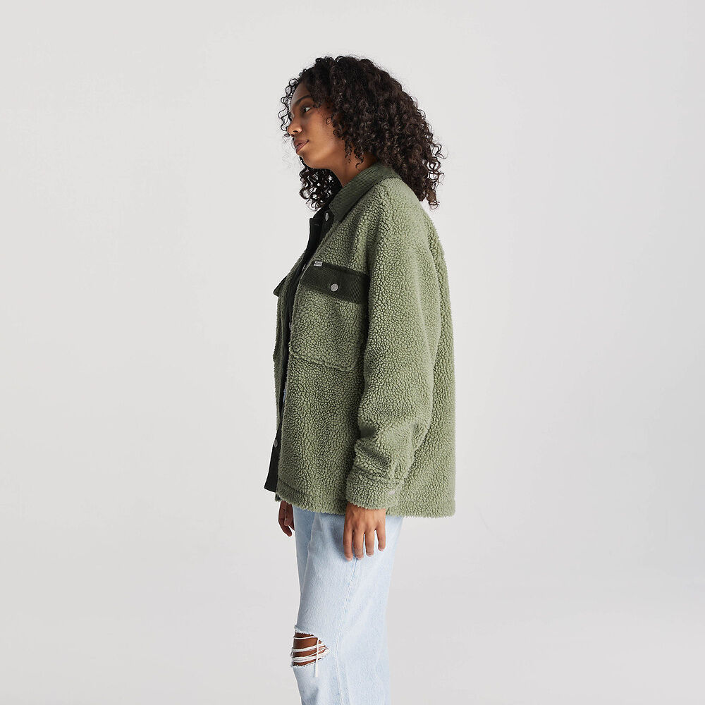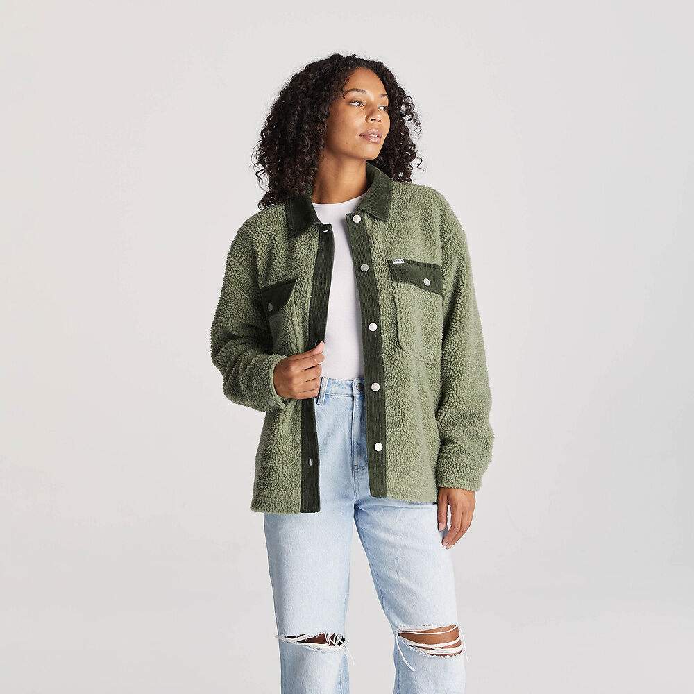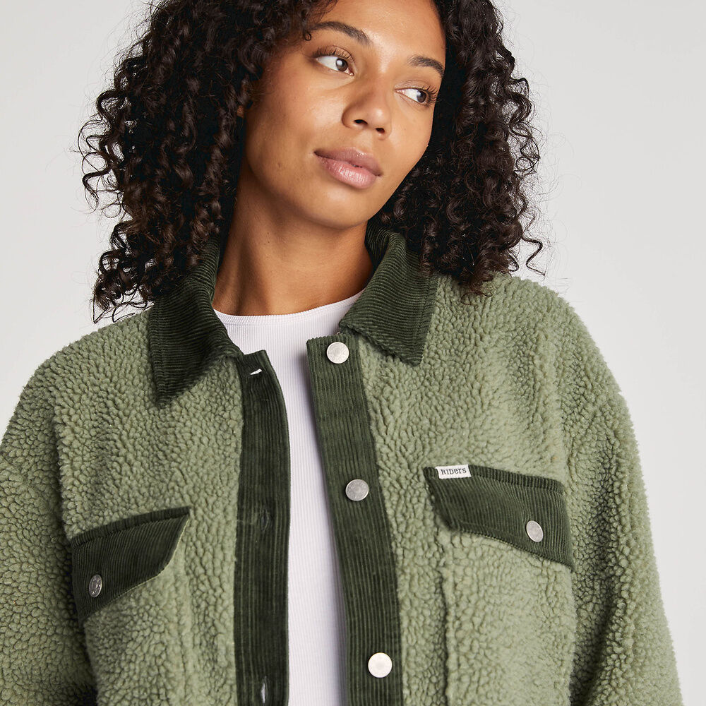 Experience ultimate comfort and style with our Teddy Shacket. Made with deep toned contrast corduroy panels and a longline design, this sherpa shacket is perfect for winter. With a button front and dual chest pockets, it's a must-have addition to your wardrobe. Model is 178cm tall and wearing a size 8.