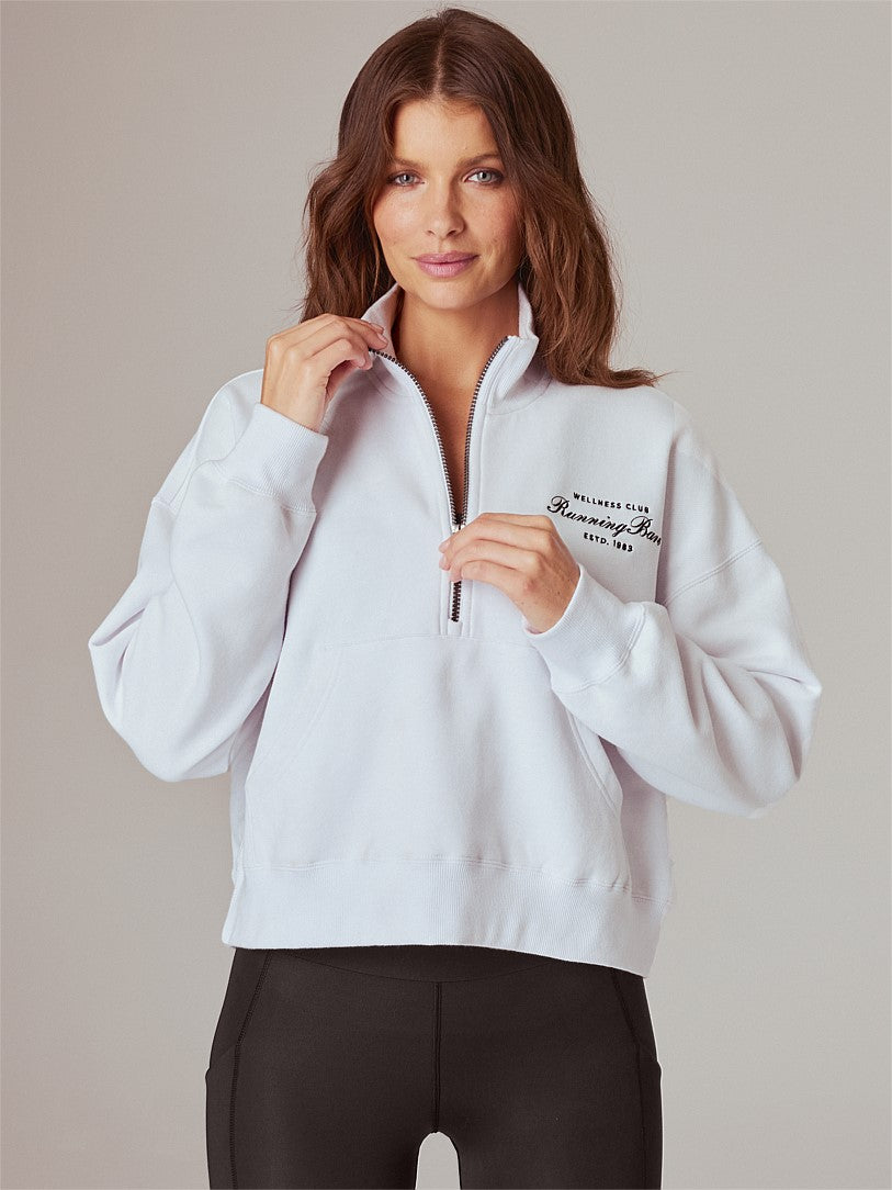 RUNNING BARE LEGACY FUNNEL NECK 1/2 ZIP CROP SWEAT WHITE