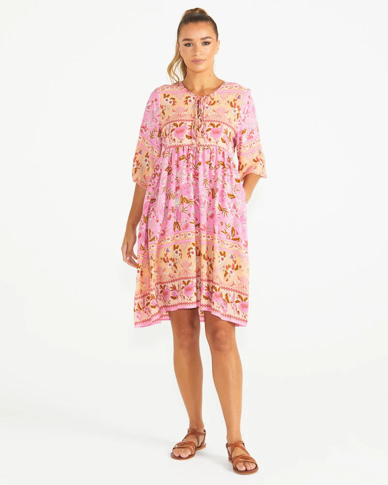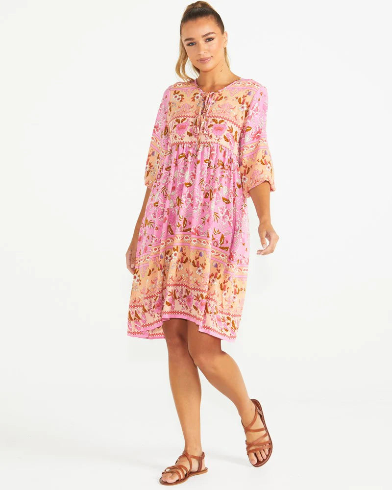 Expertly designed by SASS, the Chiara Dress features a tiered skirt and keyhole neck tie, providing a relaxed, elevated look perfect for springtime. Made from soft, drapey fabric, it is comfortable for everyday wear. Elasticated cuffs add a 3/4 sleeve, making this 100% Viscose dress both functional and stylish.