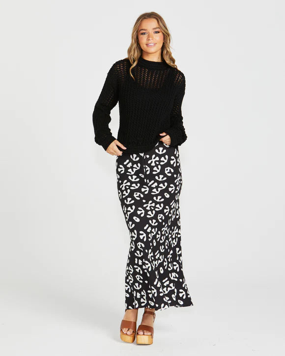 Elevate your wardrobe with our SASS VIOLA BIAS CUT SKIRT ABSTRACT. This midi-length skirt is designed with a flattering bias cut and features a comfy elastic waistband and trendy waist tie. Made from 100% viscose, it's perfect for any occasion and easy to care for. Add a touch of sass to your style today.