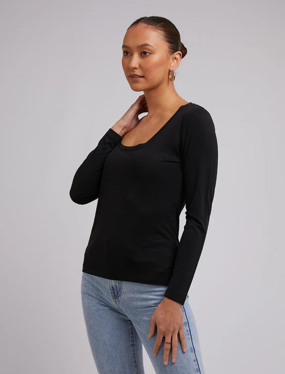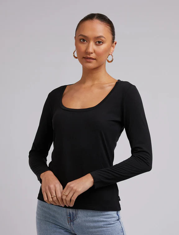 The Silent Theory Harper Long Sleeve Black is a versatile and comfortable addition to any wardrobe. With a round neckline, soft touch, and long sleeves, this basic top is perfect for everyday wear. Made with 70% Modal and 30% Polyester for a durable and stylish fit.