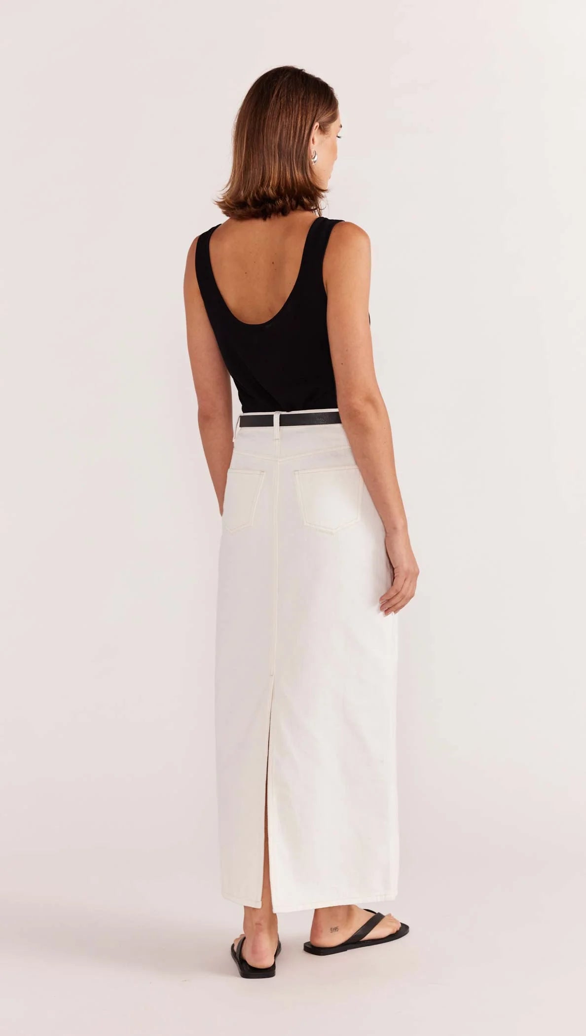 STAPLE THE LABEL INNES DENIM MIDI SKIRT WHITE