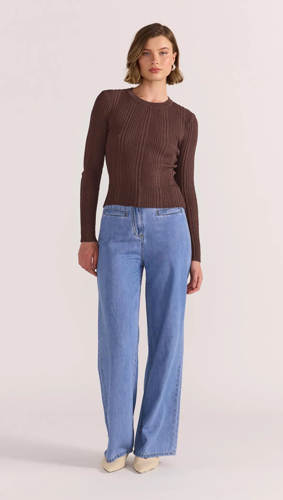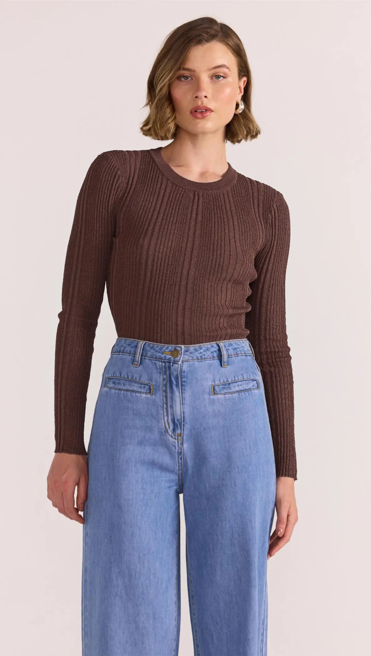 STAPLE THE LABEL LUNA RIBBED KNIT TOP NUTMEG