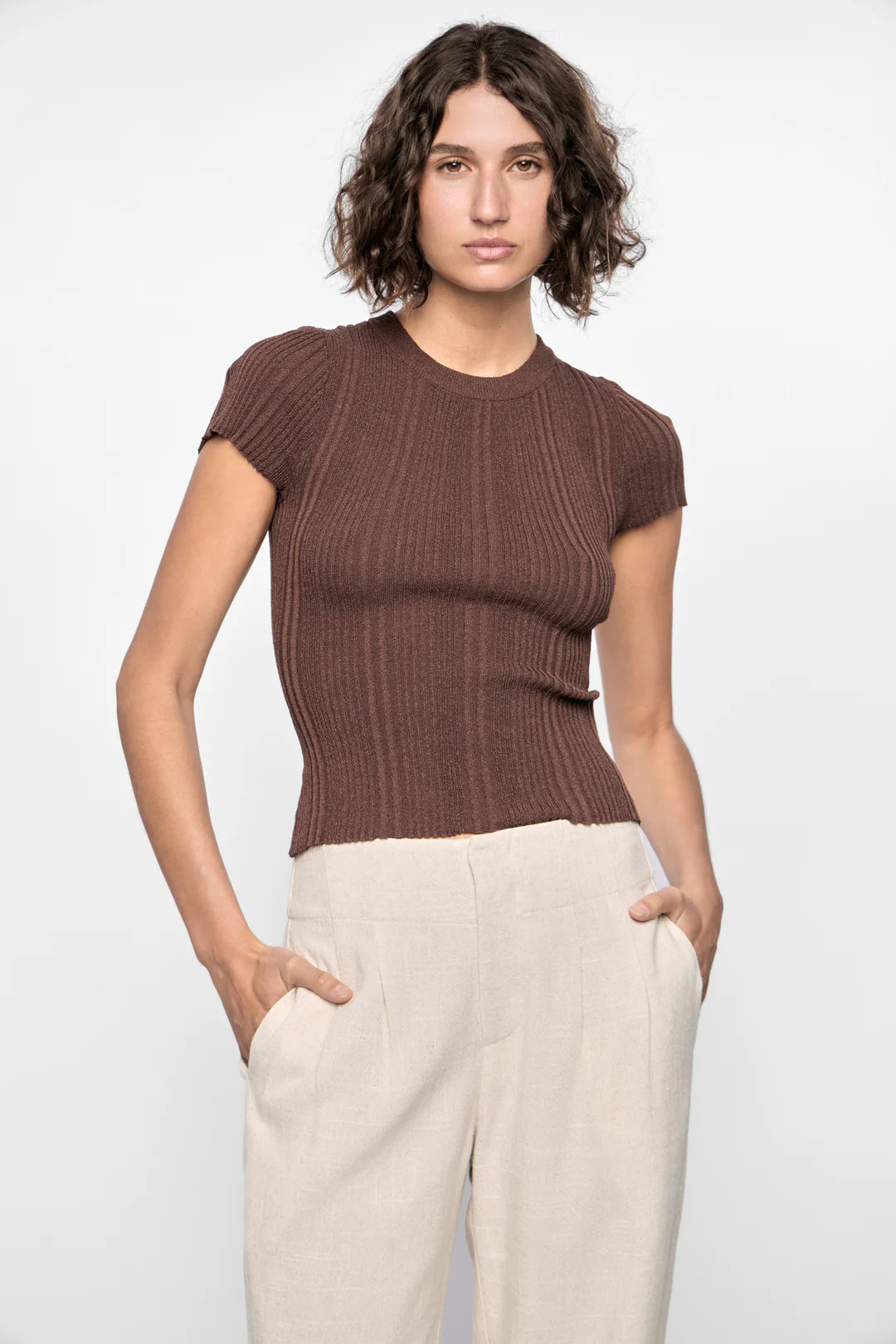 STAPLE THE LABEL MAYA RIBBED KNIT TEE ESPRESSO