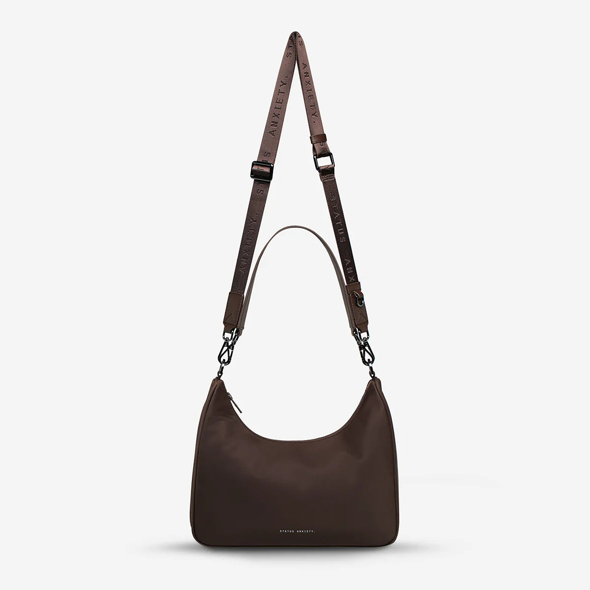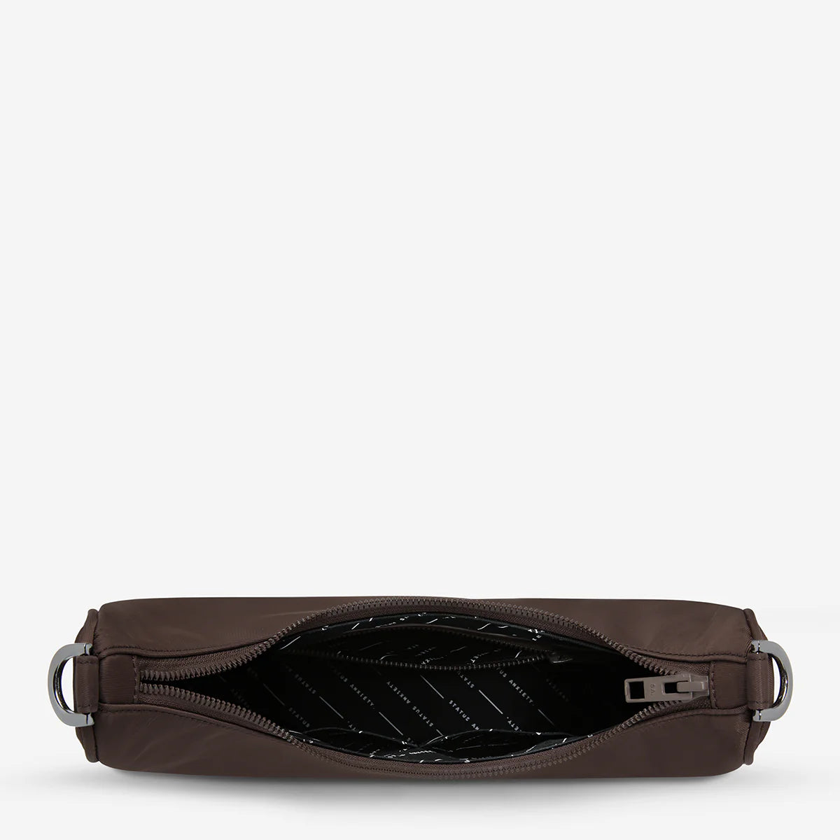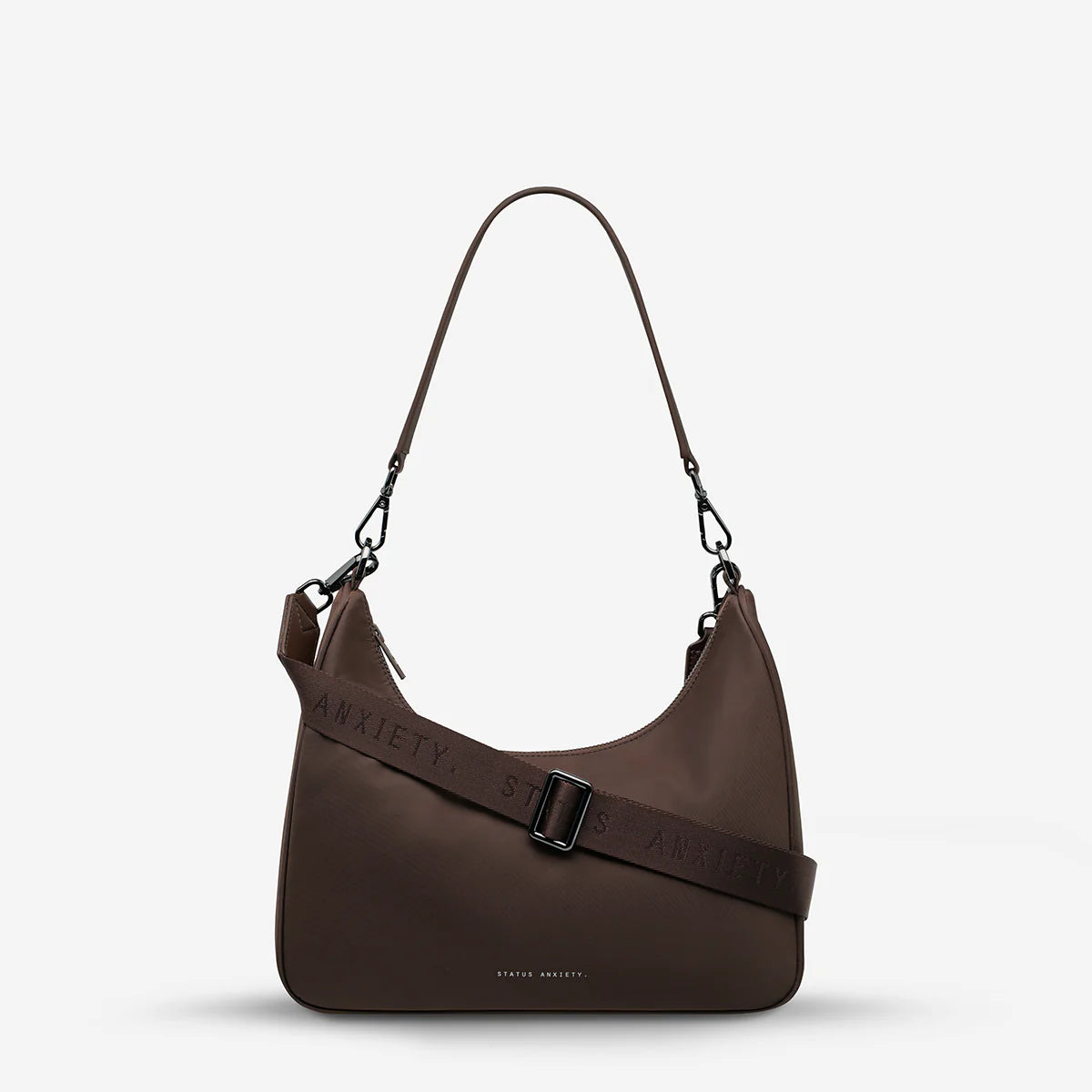 The Fleur is a versatile bag that works as hard as you do. Crafted from premium reinforced recycled polyester, it offers surprising storage capacity without compromising on style. Switch between the longer webbed strap for everyday crossbody wear or the shorter shoulder strap for dressier occasions. Inside, you'll find an internal zipper pocket and open pouch pocket to keep essentials organised. Finished with branded zippers, gunmetal hardware, and custom Status Anxiety lining—plus it arrives in a branded drawstring bag, ready to gift or keep.