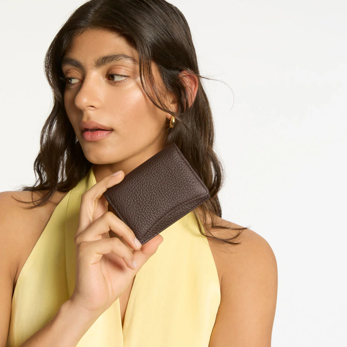 Meet Lumen, your compact companion for all your essentials. Crafted with soft shrunken pebble leather, this genius wallet fits 6 cards, folded banknotes, and slips easily into pockets. Comes with a back slider pocket and a silver foil logo, all enclosed in a sustainable Status Anxiety box.