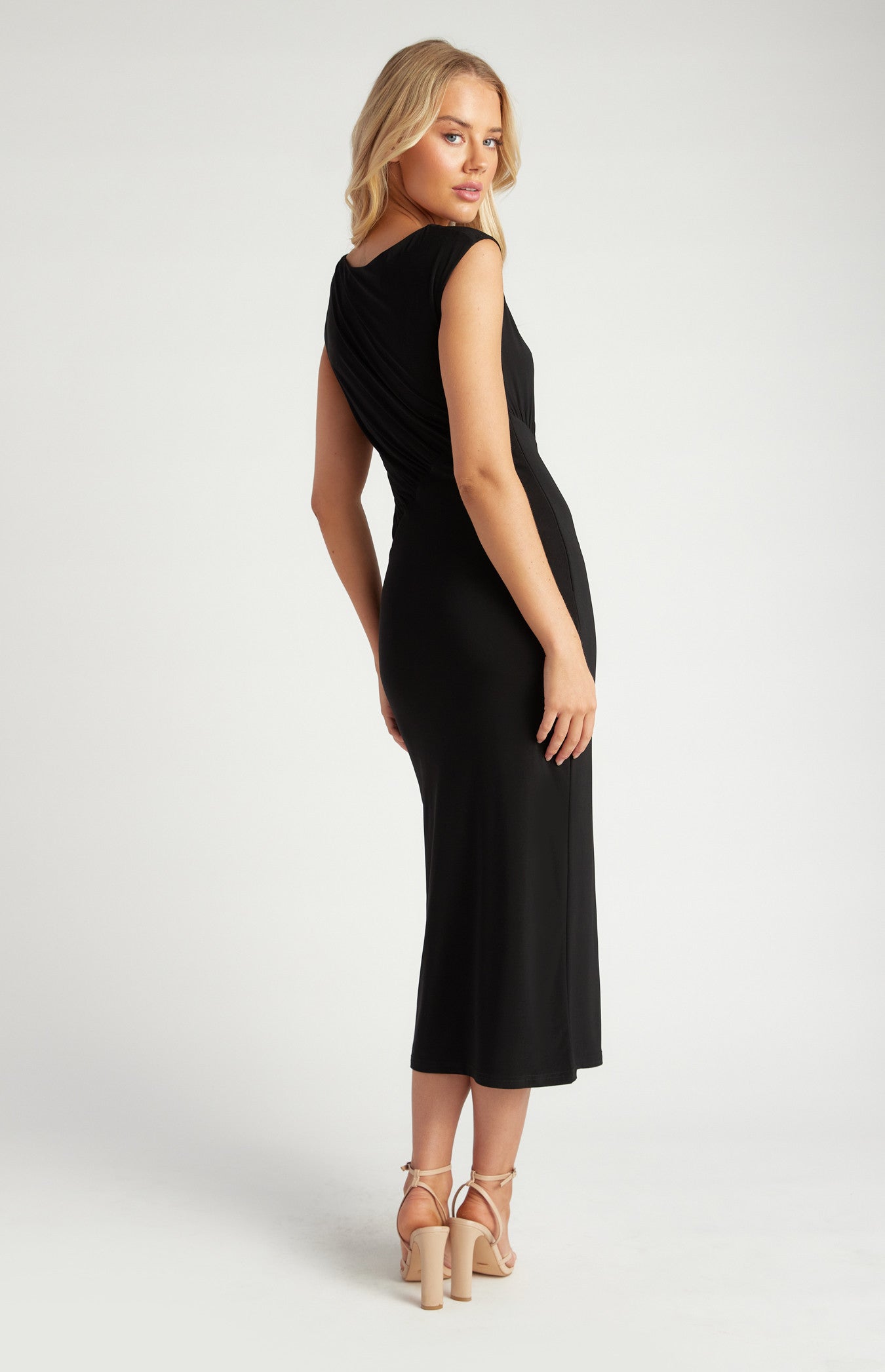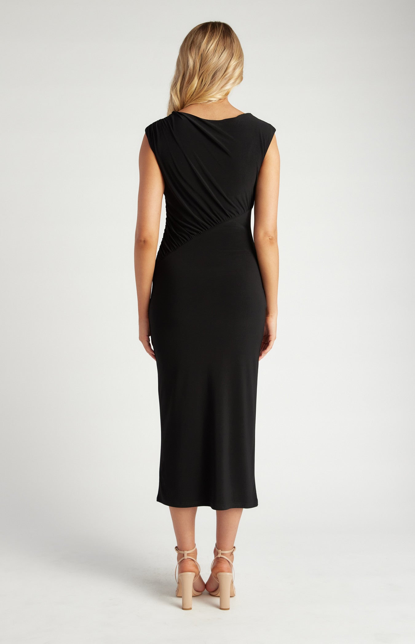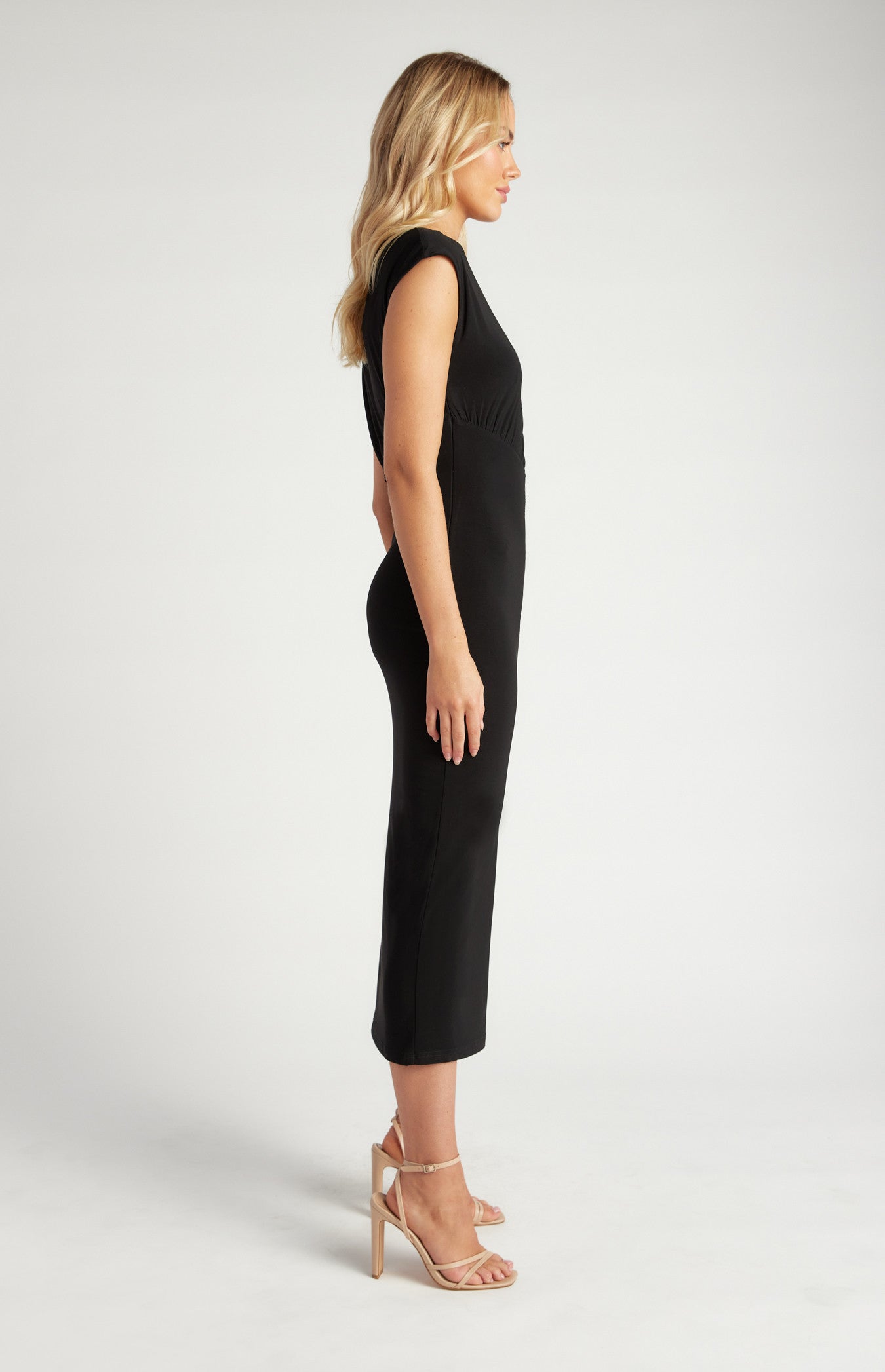 STYLE STATE GATHERED BODICE SEAM DETAIL JERSEY MIDI DRESS BLACK