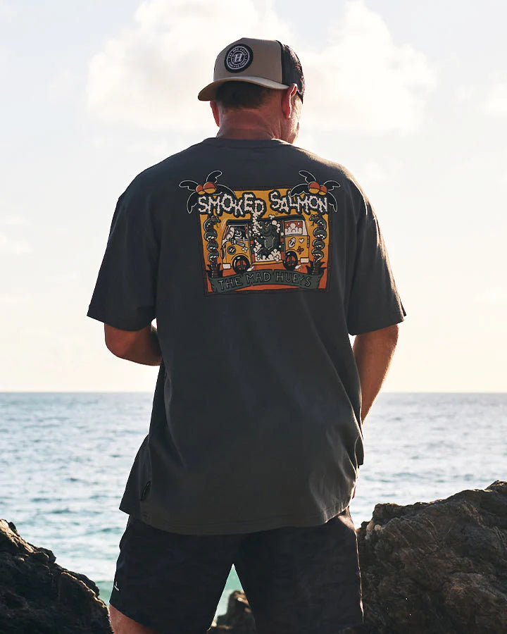 THE MAD HUEYS SMOKED SALMON OVERSIZED SS TEE CHARCOAL