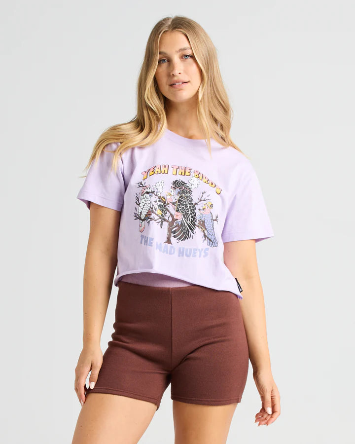 THE MAD HUEYS YEAH THE BIRDS WOMENS CROP SS TEE BABY LILAC