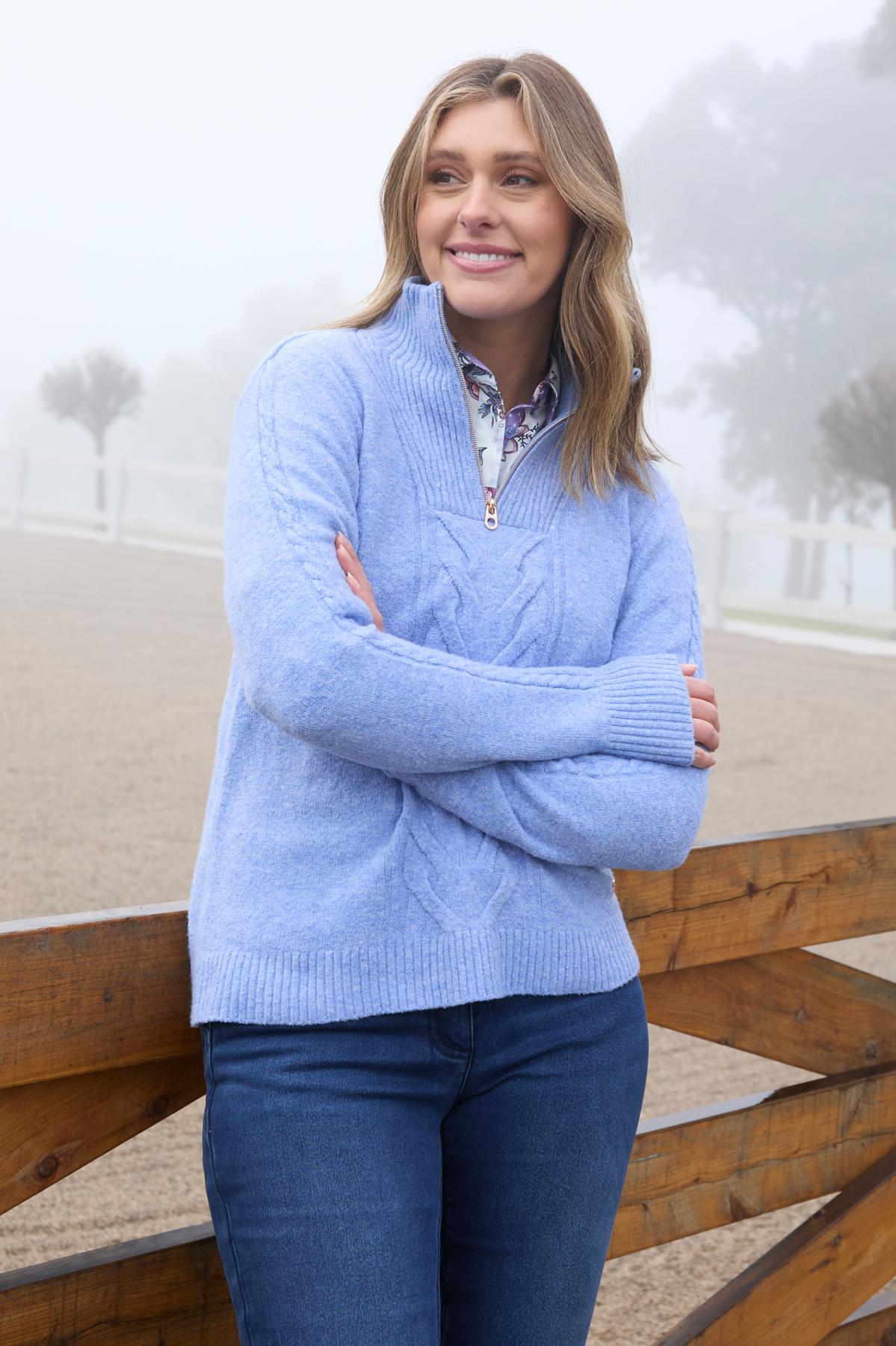 THOMAS COOK CLARA 1/4 ZIP JUMPER BLUE MARLE