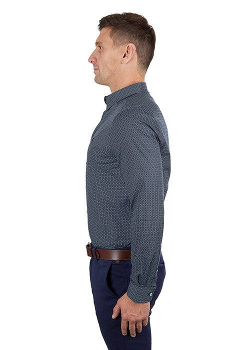 THOMAS COOK MENS CADE TAILORED LONG SLEEVE SHIRT NAVY/BLUE