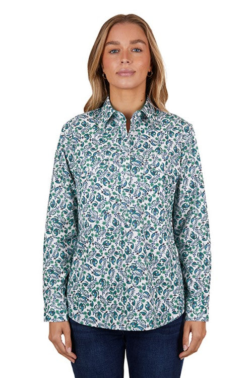 THOMAS COOK WOMENS THALIA 1/2 PLACKET LONG SLEEVE SHIRT BLUE