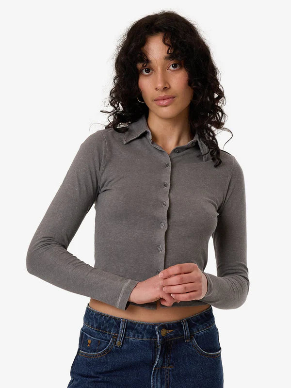 THRILLS HEMP COLLARED LONG SLEEVE ASH GREY
