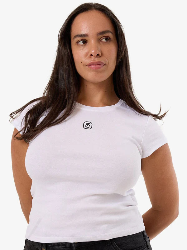The THRILLS TC FOUNDATION CAP SLEEVE TEE WHITE is a must-have for any wardrobe. Made from premium cotton jersey, it offers all-day comfort and a flattering slim fit. With a modern scoop neckline, cap sleeves, and a stylish Thrills logo, this tee is both timeless and updated. Elevate your style with this essential piece.