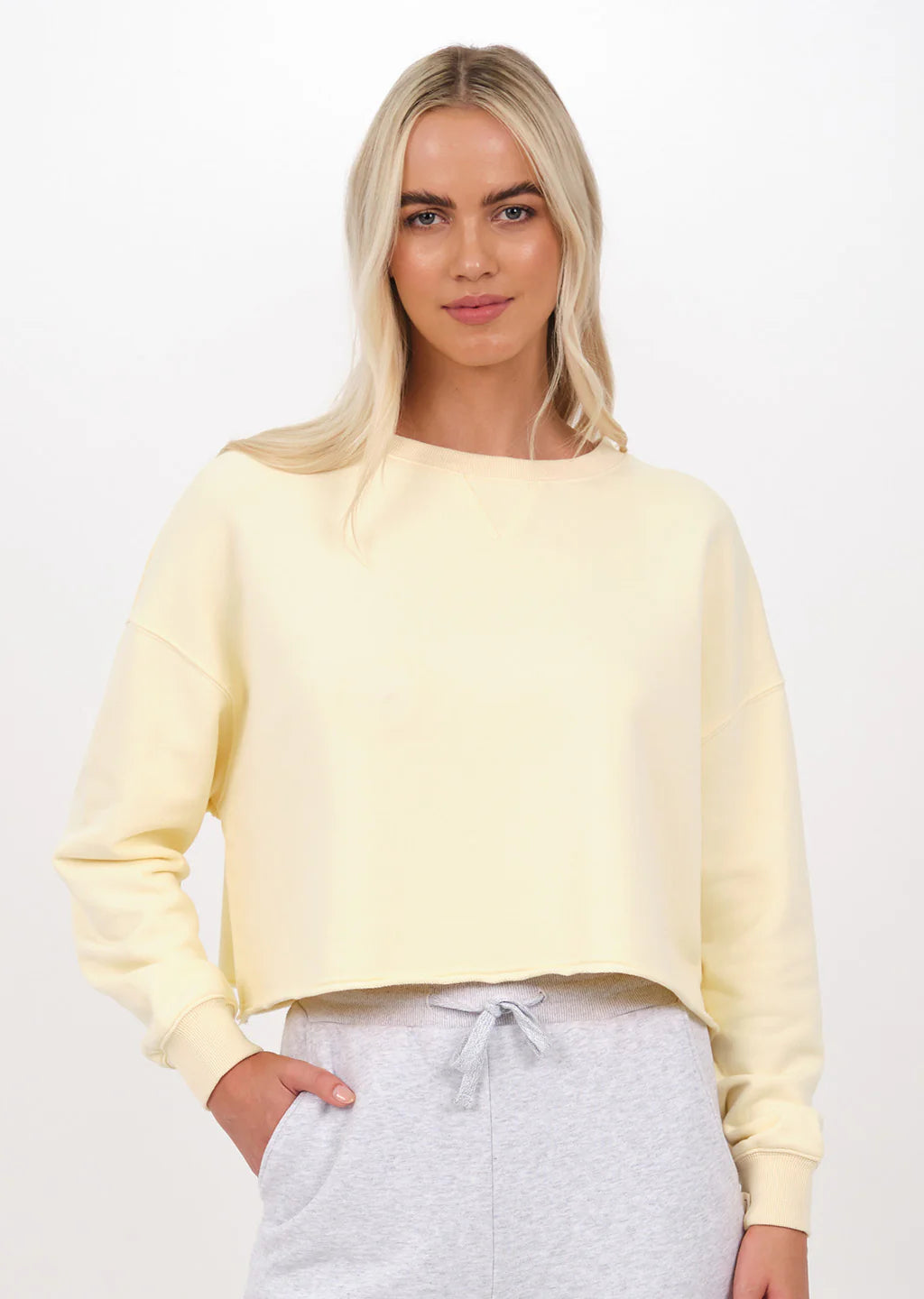 Introducing the Titchie Frutti Sweater. Made from 100% cotton French terry, this super soft and cosy sweater offers a relaxed fit and a ribbed neck and cuffs. With its raw edge hem and slightly cropped design, it's the perfect balance of slouch and style. And, it won't add any bulk to your look.