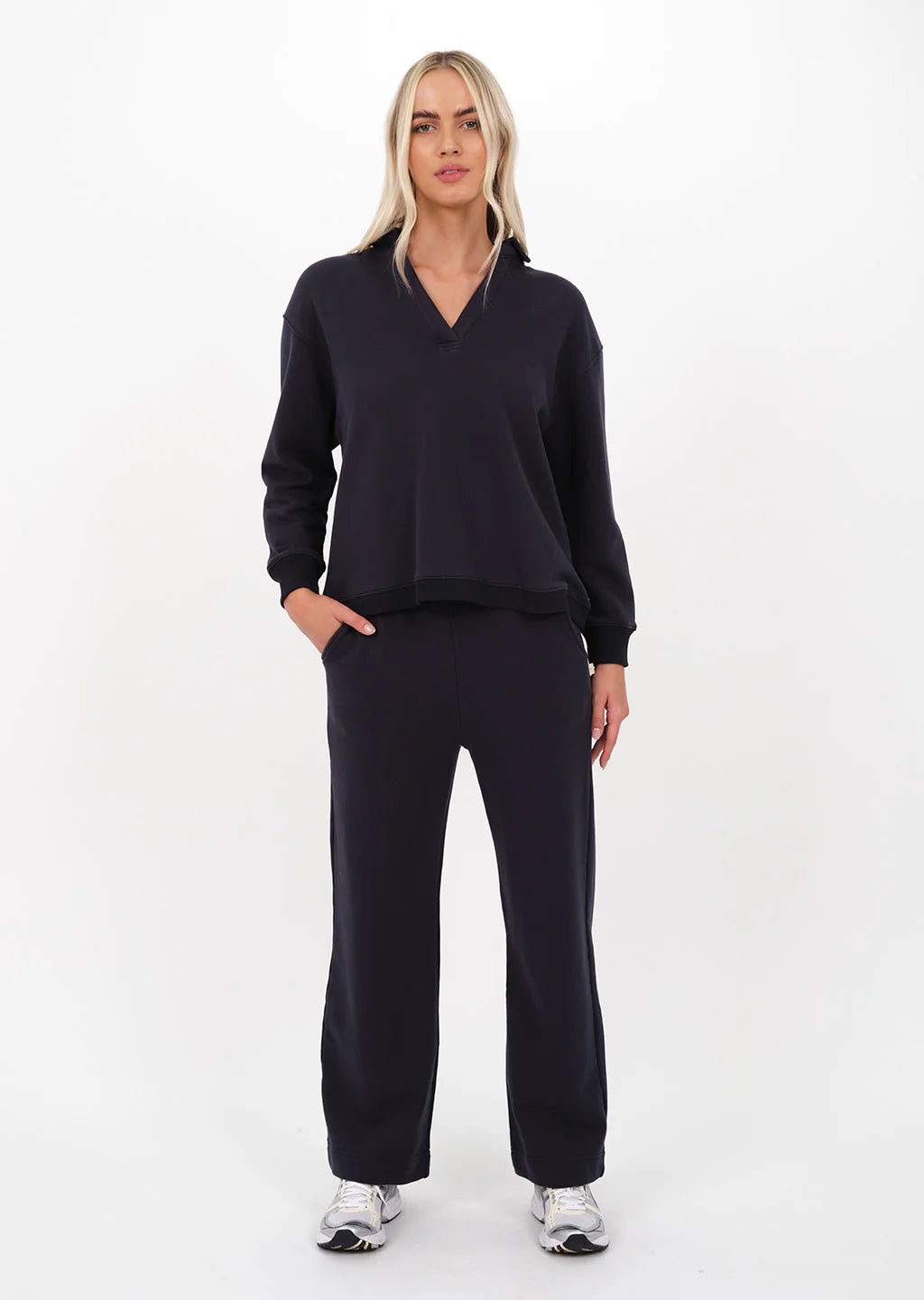 Discover the Titchie Mela Sweater - a must-have in cozy comfort. This long-sleeved sweater features a v neckline, easy fit, and plush French terry fabric for a soft feel inside and out.