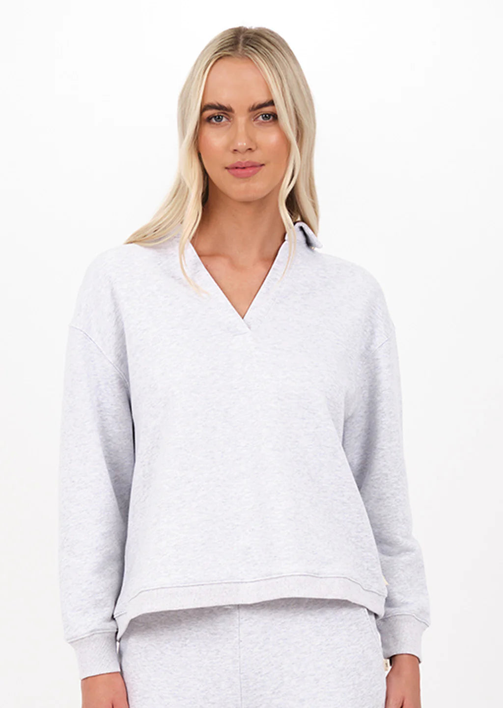 Introducing the Titchie Mela Sweater, crafted from plush French terry for ultimate comfort. This long-sleeved, collared sweater boasts an easy fit and sits just above the hip. With dropped shoulders and wide ribbed cuffs, it's perfect for a relaxed yet stylish look. Stay warm and cosy in this soft and luxurious sweater.