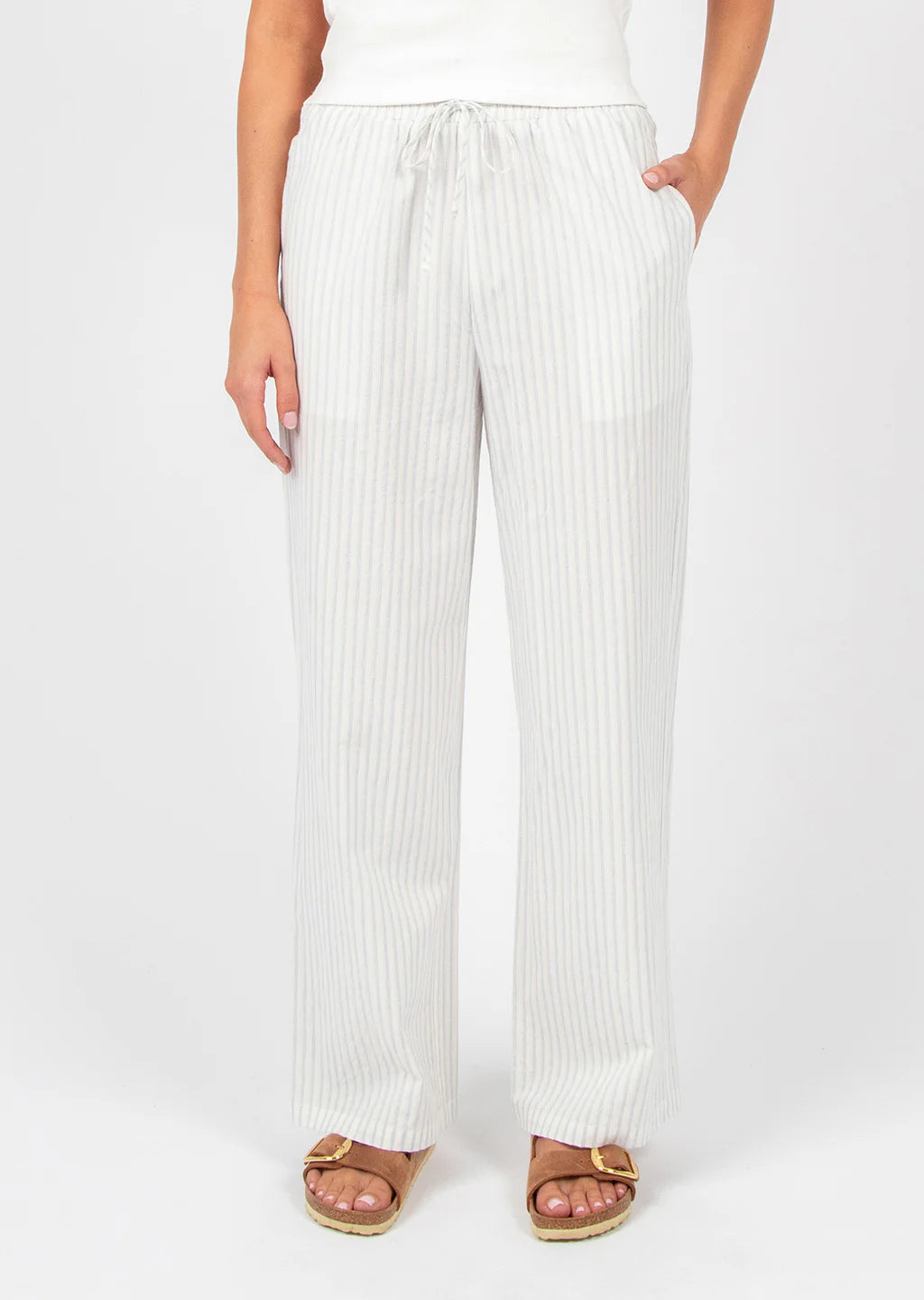 Introducing the Titchie Poolside Pant, expertly crafted in soft, lightweight cotton with a subtle stripe finish. The gentle gathered waist, adjustable with elastic and a drawstring cord, offers versatile wearing options. Enjoy the convenience of side and back pockets.
