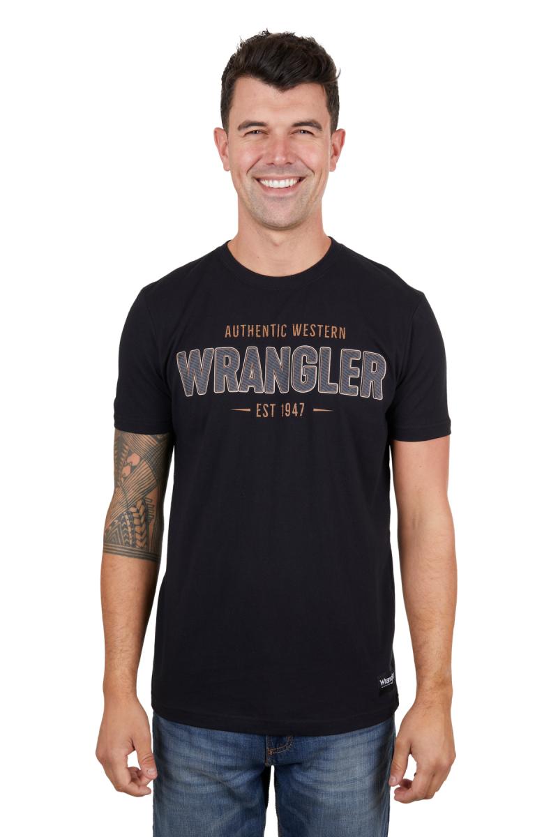 This classic tee from Wrangler® features a rib neck band for a comfortable fit and the iconic logo hem label for a stylish touch. With its timeless design, this versatile black tee is a must-have for any wardrobe. Keep it casual or dress it up, the choice is yours.