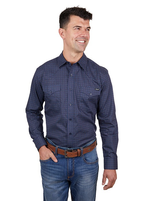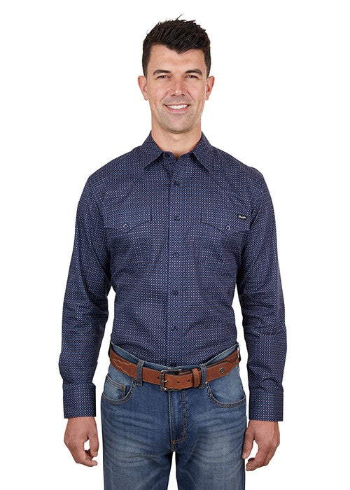 WRANGLER MENS CAM LONG SLEEVE SHIRT NAVY/BLUE