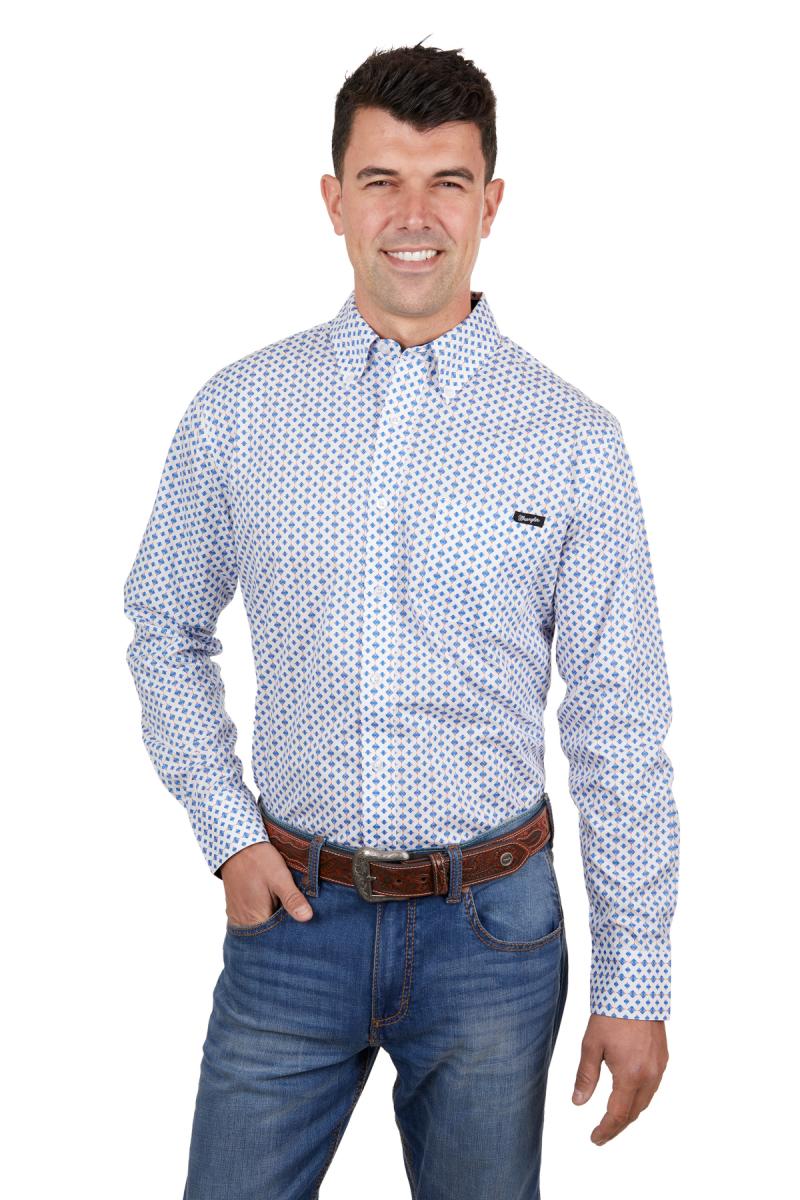 WRANGLER MENS NICK LS SHIRT ROYAL/ORANGE