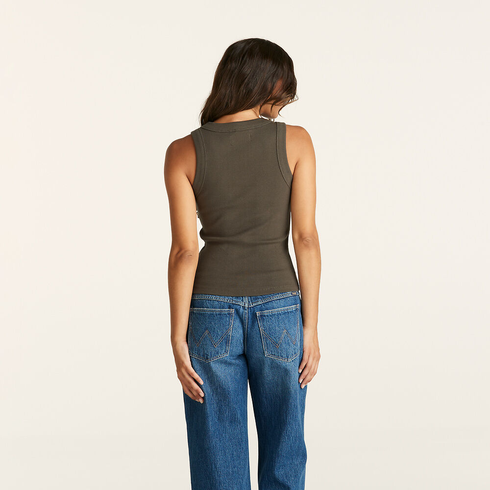 The Wrangler Staple Rib Tank in Slate is a wardrobe essential for any fashion-forward individual. With its form-fitting shape, flattering neckline, and thick ribbed fabric, this tank is both figure-forming and comfortable. Its longer length makes it perfect for tucking into your favorite jeans, and the included Wrangler logo adds a touch of iconic style. Made from heavyweight cotton-rich rib fabric, this tank offers the perfect balance of stretch and retention. Elevate your tank collection with this stylish and versatile piece.